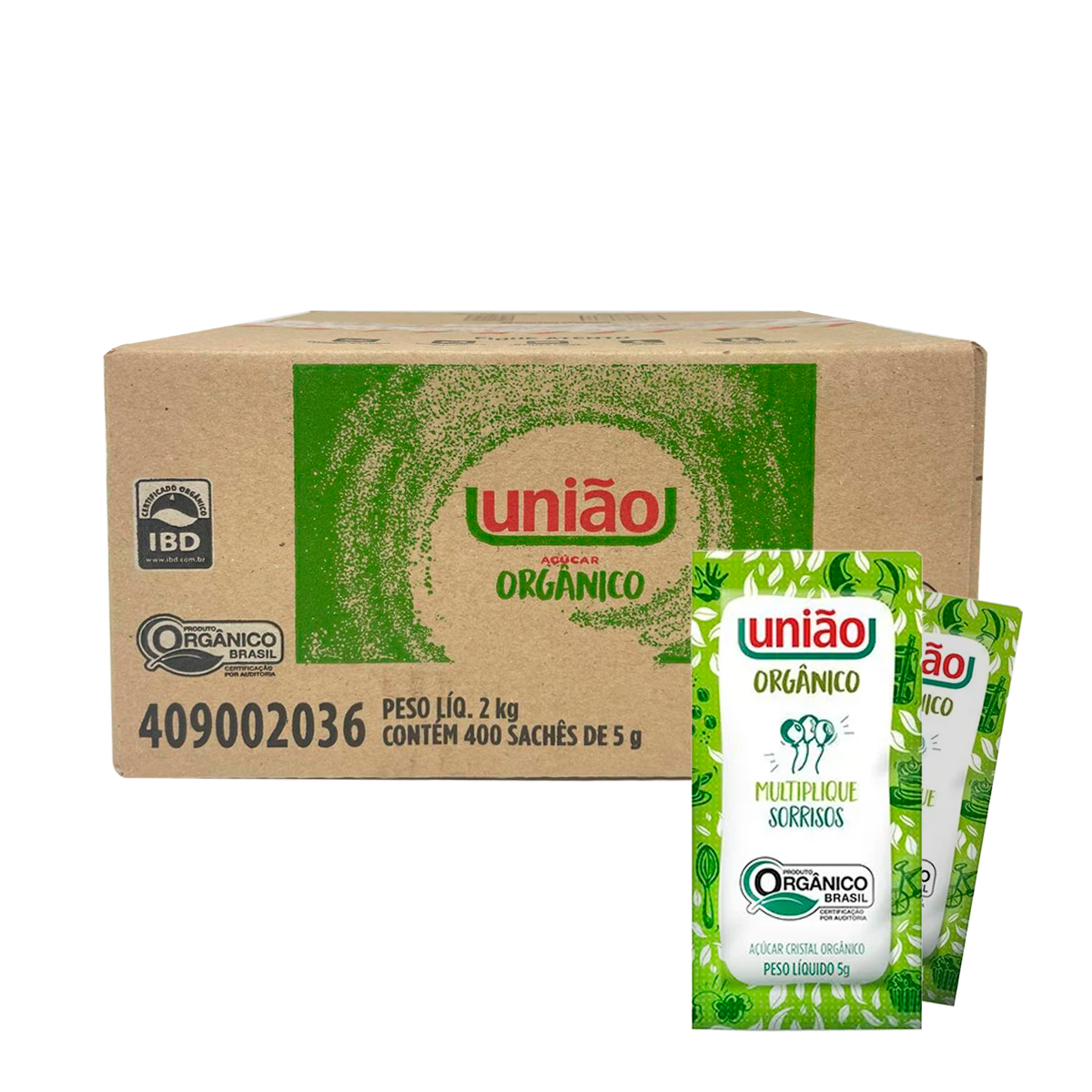 Açúcar Orgânico União Caixa com 400 sachês | O Açúcar Orgânico União é produzido a partir de cana-de-açúcar cultivada sem agrotóxicos ou aditivos químicos, respeitando o meio ambiente e os padrões da agricultura sustentável | Seu processamento segue rigorosos critérios de certificação orgânica, garantindo pureza, qualidade e rastreabilidade | Perfeito para restaurantes, cafeterias, hotéis, eventos e uso doméstico, oferece praticidade com controle de porção e embalagem higiênica | Diferenciais do Produto: cultivado sem agrotóxicos | certificação orgânica IBD | embalagem individual higiênica | ideal para serviços de café, chá e bebidas | produção sustentável com respeito à natureza | Especificações Técnicas: marca: União | tipo: açúcar orgânico cristal | quantidade: caixa com 400 sachês | tamanho do sachê: 8 x 3,4 cm | peso por sachê: 5g | embalagem: papel individual | composição: 100% açúcar orgânico de cana | certificação: IBD ¿ Instituto Biodinâmico | não contém glúten | Código: -4364