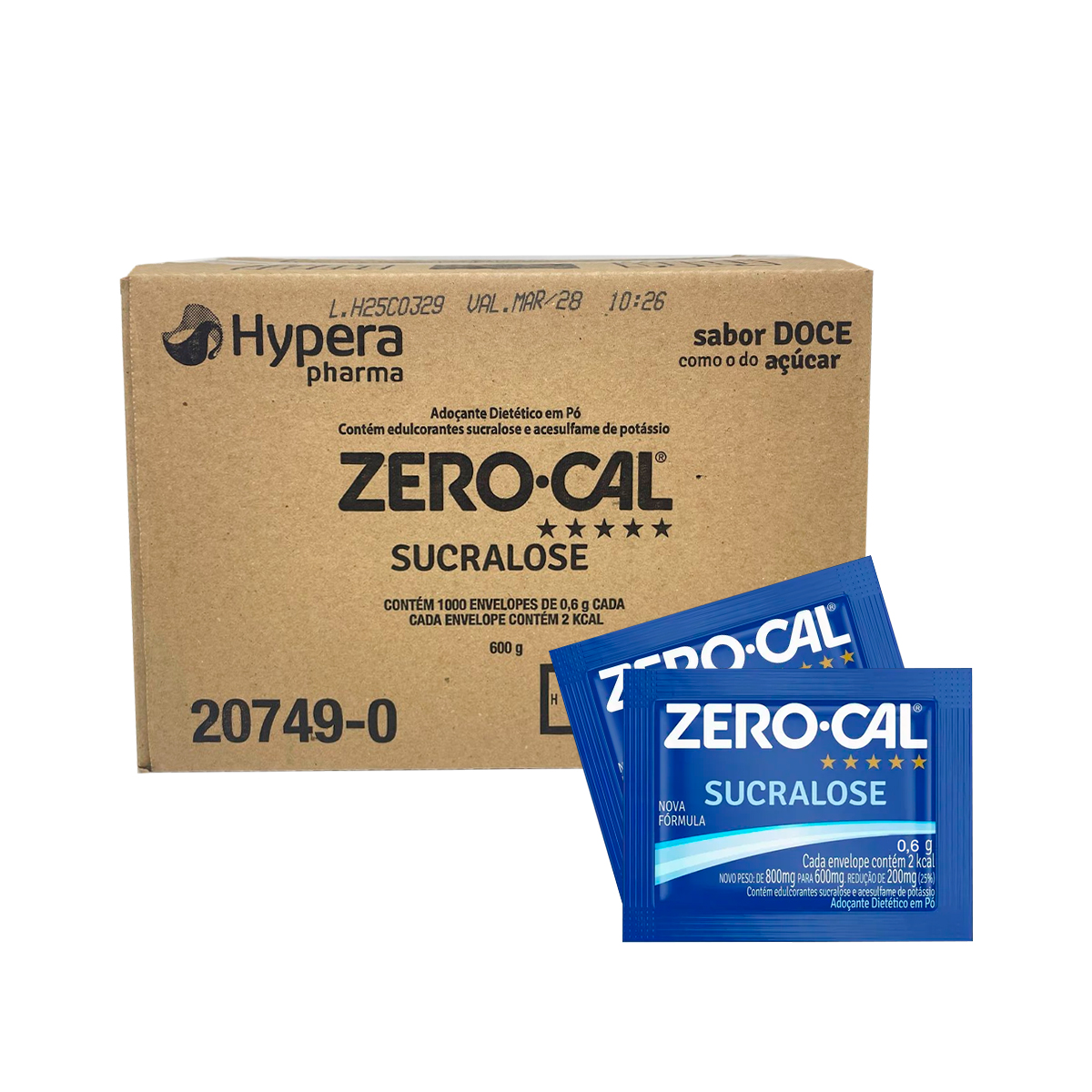 Adoçante em Pó Zero-Cal Sucralose Caixa com 1.000 sachês | O adoçante em pó Zero-Cal Sucralose é ideal para quem busca sabor doce com menos calorias, sem abrir mão do prazer | Produzido a partir da cana-de-açúcar, oferece um sabor muito semelhante ao do açúcar, sem amargor residual | Pode ser utilizado em bebidas e alimentos quentes ou frios, pois mantém seu poder adoçante mesmo em altas temperaturas | É uma escolha prática, versátil e com excelente rendimento, ideal para residências, cafeterias, clínicas, restaurantes, hotéis e ambientes corporativos | Diferenciais do Produto: sabor semelhante ao do açúcar | pode ser usado em bebidas quentes ou frias | pronto para uso, prático e de fácil dosagem | zero calorias por porção | excelente custo-benefício em embalagem econômica | Especificações Técnicas: marca: Zero-Cal | tipo: adoçante em pó | adoçantes: sucralose e acesulfame-K | peso por sachê: 0,6g | embalagem: caixa com 1.000 sachês | tamanho da caixa: 18 x 16 x 19 cm | ingredientes: lactose, edulcorantes sucralose e acesulfame-K, antiumectante dióxido de silício | alérgicos: contém derivados de leite | não contém glúten | Código: 4755