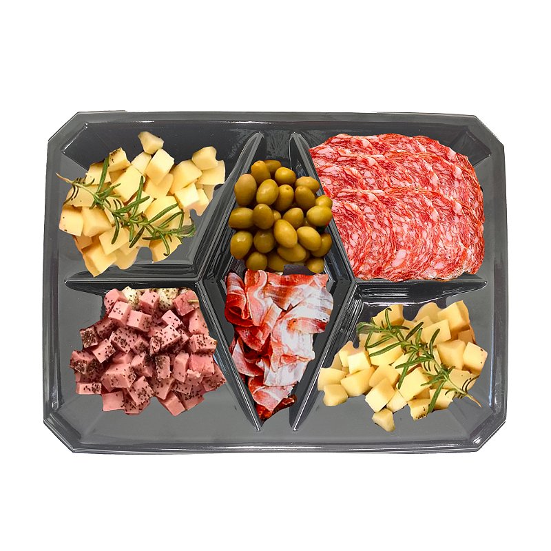 BANDEJA PENTAPARTIDA P/PETISCO 5DIV C/TAMPA CRISTAL PW-315 TWH C/90