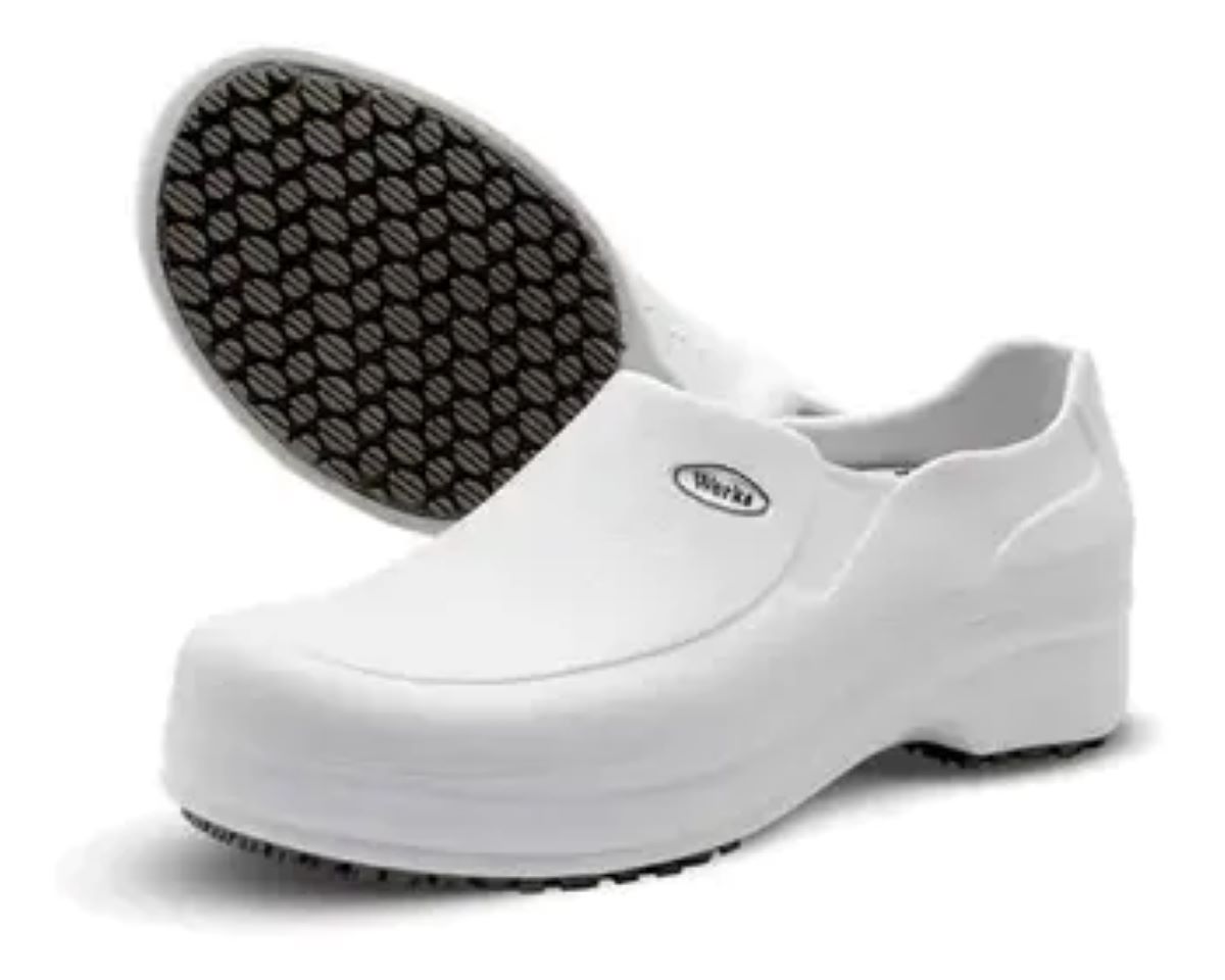 Calçados desenvolvidos para os profissionais que atuam em ambientes com pisos escorregadios ou com resíduos gordurosos, detergente, entre outros. Com design arrojado e moderno, super leve, confeccionado com alta tecnologia e atende todas as necessidades profissionais, proporcionando boa ergonomia.