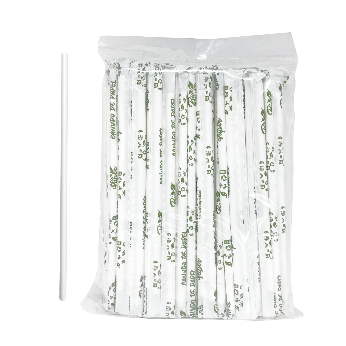 Os canudos de papel da linha Bio Paper são a alternativa ideal para substituir os canudos plásticos convencionais, alinhando sua operação à responsabilidade ambiental. Embalados individualmente em sachês, são ideais para estabelecimentos que prezam por higiene, sustentabilidade e praticidade no atendimento ao cliente. Com estrutura firme, não dobram e não amassam facilmente, oferecendo excelente desempenho mesmo após contato prolongado com líquidos. Podem ser usados com bebidas frias ou geladas como refrigerantes, sucos, drinks, águas aromatizadas, entre outros. | Ideal para lanchonetes, restaurantes, bares, cafeterias, hotéis e eventos | Perfeito para delivery, take away e consumo imediato | Atende às normas de segurança alimentar | Biodegradável, reciclável e livre de plástico | Embalado individualmente em sachê – mais higiene e praticidade | Alta durabilidade mesmo em contato com líquidos | Composição: papel com pigmentos atóxicos | Cor: branco | Diâmetro: 5 mm | Comprimento: 196 mm | Embalagem com 100 unidades | Dimensões do pacote: 25 cm (A) x 16 cm (L) x 3 cm (P). | código: 8620