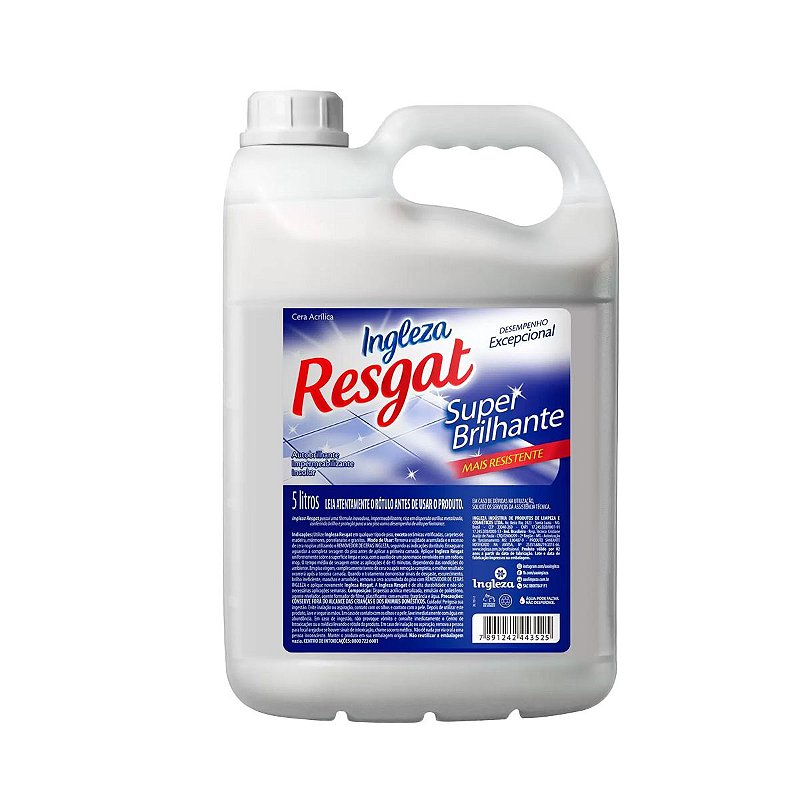 "Cera Resgat Ingleza possui uma fórmula inovadora, rica em dispersão acrílica metalizada, conferindo brilho e proteção com efeito antiderrapante para o seu piso com o desempenho de alta performance. Indicada para todo tipo de piso, exceto cerâmicas vitrificadas, carpetes de madeira, mármores, porcelanatos e granitos. Indicada para todo tipo de piso, exceto cerâmicas e porcelanatos vitrificados, carpetes de madeira, mármores e granitos polidos.