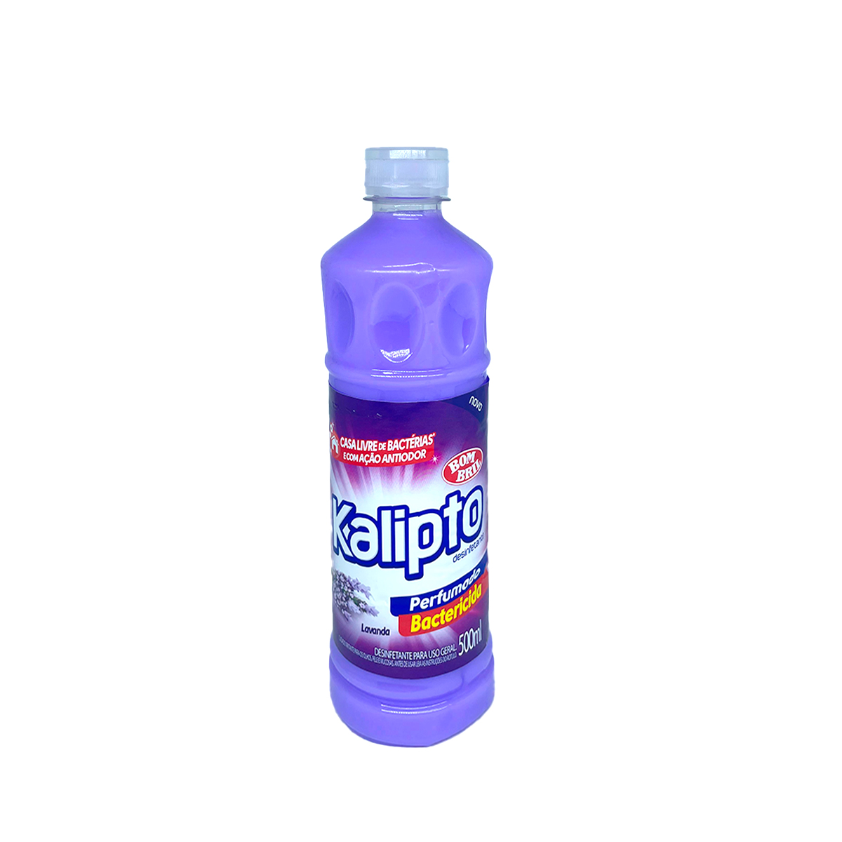 O Desinfetante Kalipto Lavanda 500mL é a solução versátil para limpar, desinfetar e perfumar sua casa. Com textura leitosa e fragrância suave de lavanda, mata germes e bactérias, sendo eficiente contra o vibrião da cólera. Ideal para uso doméstico em quintais, garagens, pisos e superfícies laváveis, garantindo ambientes limpos, higienizados e perfumados. | Além da limpeza doméstica, o Kalipto é perfeito para higienizar a sola de tênis e calçados, removendo sujeira de reentrâncias e deixando um aroma agradável. | Especificações do Produto: | Conteúdo: 500 mL | Fragrância: Lavanda | Tamanho da embalagem: 22 x 6 cm de diâmetro | Composição: Tensoativo catiônico, sequestrante, conservante, opacificante, atenuador de espuma, controlador de pH, fragrância e água | Componente ativo: 0,38% de cloreto de benzil alquil, dimetil, amônio / cloreto de diedecil dimetilamônio | Indicação: Quintais, garagens, pisos, superfícies laváveis e sola de calçados | Benefícios: | Limpa e desinfeta de forma eficiente | Mata germes e bactérias, inclusive o vibrião da cólera | Aroma suave de lavanda que perfuma os ambientes | Versátil: ideal para casa, quintal, garagem e calçados | Prático, econômico e de fácil aplicação | Com o Desinfetante Kalipto Lavanda 500mL, você garante ambientes higienizados, perfumados e protegidos, cuidando da limpeza da sua casa de forma prática e eficiente. | Código: -6158