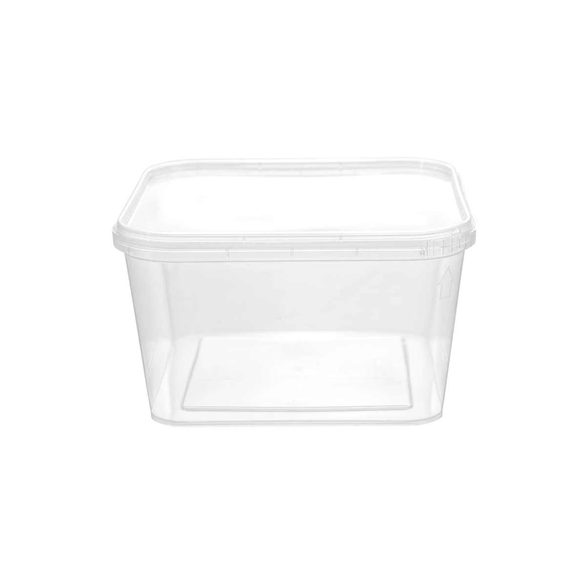 Nosso pote quadrado com lacre de 600 ml é livre de BPA, pode ser levado ao freezer e micro-ondas.