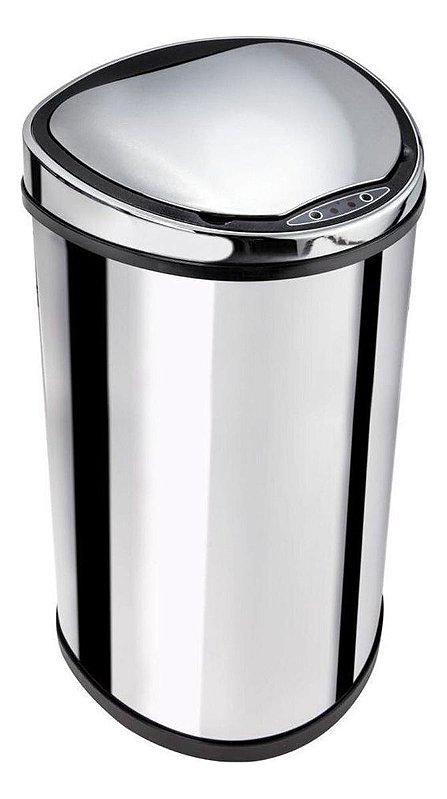 Especificações: - Referência: 000806; - Capacidade: 25 litros; - Distância de detecção: até 15cm; - Composição: Aço inox 410 polido (tampa em plástico cromado); - Alimentação: 4 pilhas alcalinas AA (não inclusas); - Acompanha: arco para colocação do saco de lixo;