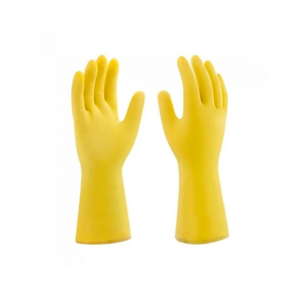 Luva confeccionada em borracha natural de látex, anatômica, antiderrapante, com bainha. 1 par. Cor: amarela.