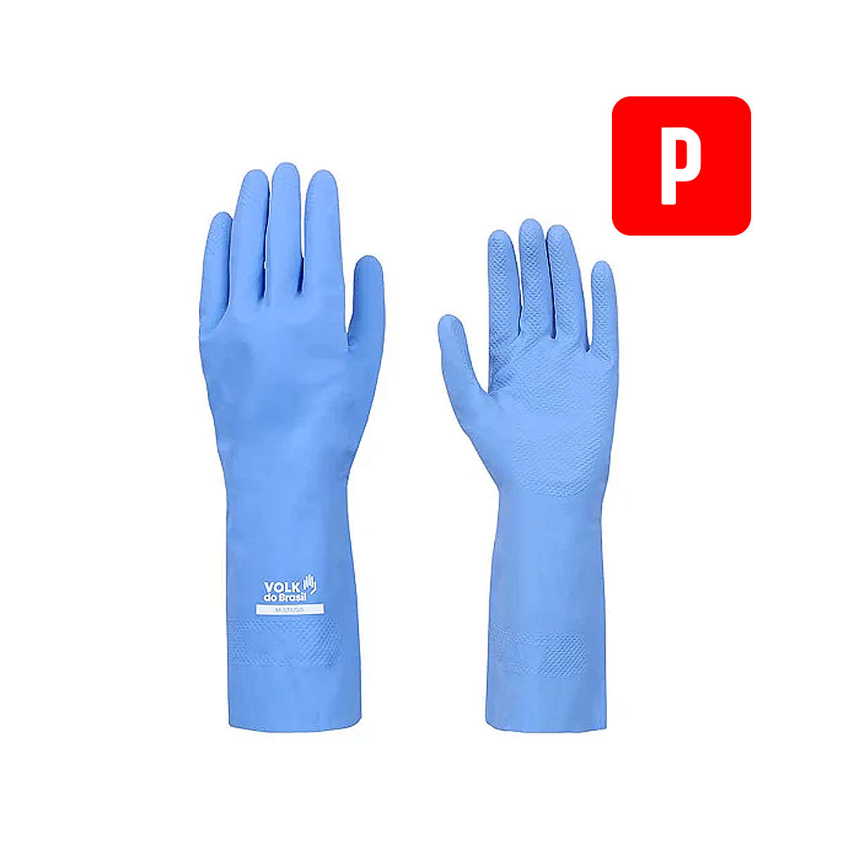 " Luva de segurança, confeccionada em borracha natural (látex), revestida internamente com flocos de algodão, antiderrapante na face palmar e nos dedos, lisa na face dorsal e punho. "