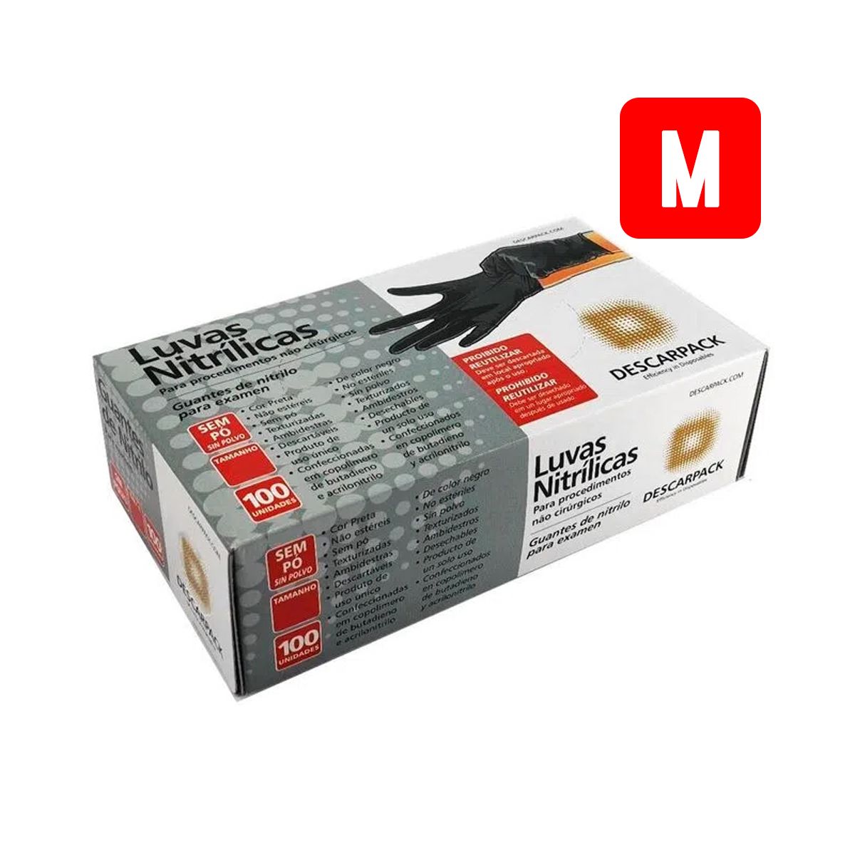 Luva Nitrílica Para Procedimento Não Cirúrgicos Sem Pó - Preta C/100 (M) Descarpack