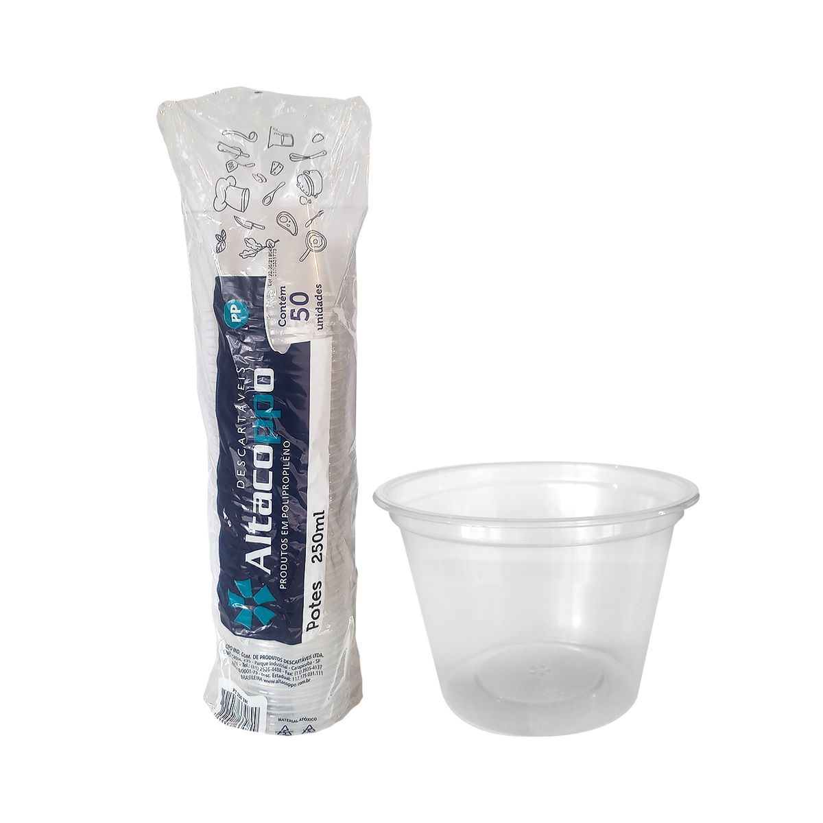 "O Pote de Plástico Descartável de 250mL da marca Altacoppo é perfeito para restaurantes, bares e para o uso pessoal, pois pode ser utilizado para servir sobremesas como mousses, gelatinas, pavês, entre outros.