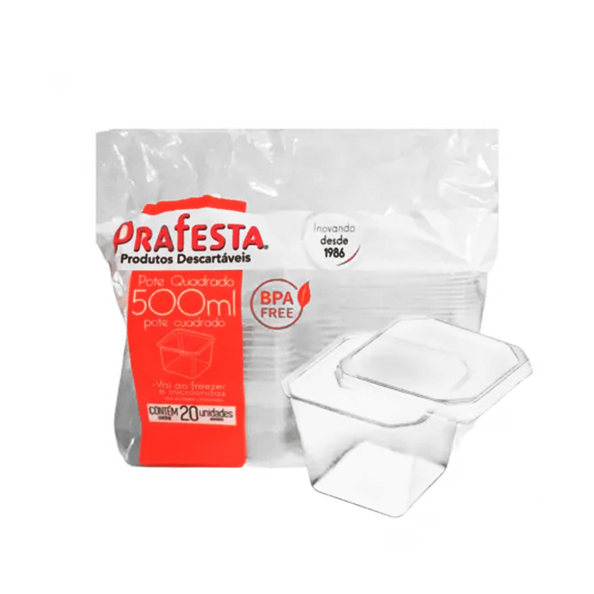 Prafesta Pote Cristal Retangular 500mL com Tampa, ideal para armazenar e acondicionar diversos tipos de alimentos, servir caldos, sobremesas e petiscos ou para restaurantes e lanchonetes venderem porções individuais de sobremesas de uma forma prática, organizada e segura.