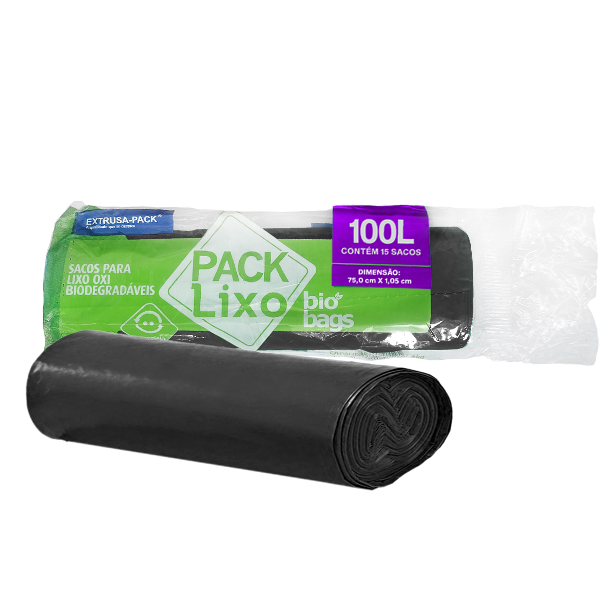 Nossos sacos de lixo oxibiodegradáveis na cor preta são ideais para diversos ambientes, oferecendo uma solução ecológica que ajuda a manter sua casa ou empresa limpa e o planeta mais saudável. Fabricados com PEBD reciclado e aditivo oxi-biodegradável, esses sacos passam por um processo acelerado de decomposição quando expostos ao oxigênio, luz e calor, fragmentando a cadeia molecular do polímero em moléculas menores e reduzindo significativamente o tempo de decomposição. | Capacidade: 100 litros | Dimensões: 75 cm x 105 cm | Cor: Preta | Tamanho da Embalagem: 20cm x 5,5 de diâmetro | Material: PEBD reciclado com aditivo oxi-biodegradável e pigmento | Formato: Rolo com 15 sacos | Produzido com material reciclado | Degradação acelerada e menor impacto ambiental | Ideal para resíduos volumosos em ambientes corporativos, comerciais e domésticos. | código: 8901