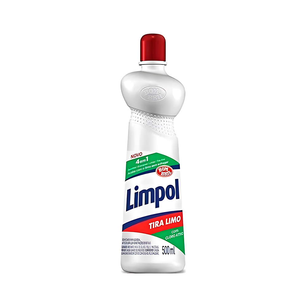 O Limpol Tira-Limo agora é 4 em 1, pois conta com o Cloro Max Ativo em sua composição, que clareia, desinfeta e limpa.